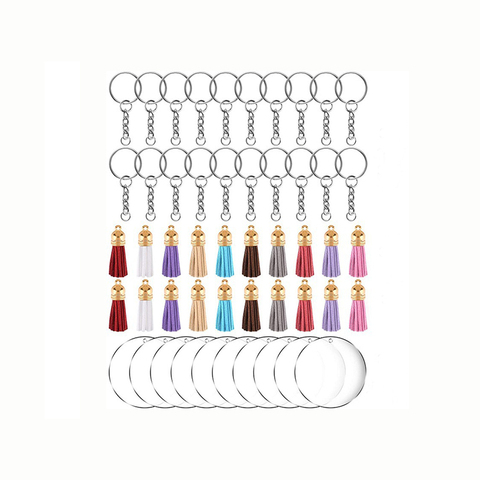 Portachiavi in bianco acrilico con cerchio rotondo a disco trasparente stampato personalizzato 1PC con nappe